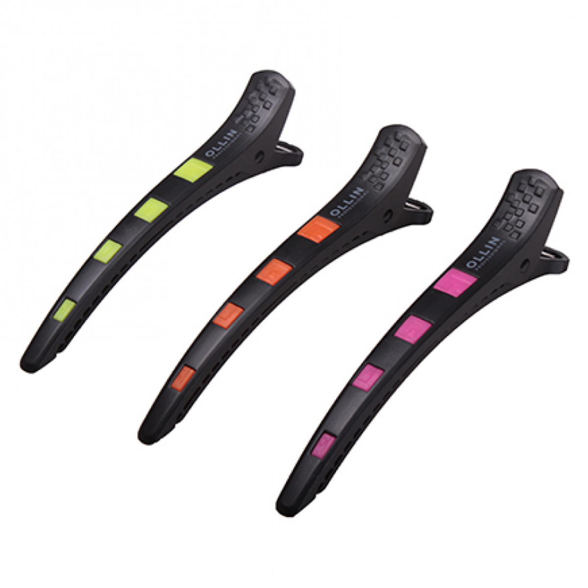 Ollin, Зажимы пластиковые с квадратными силиконовыми вставками, 6шт