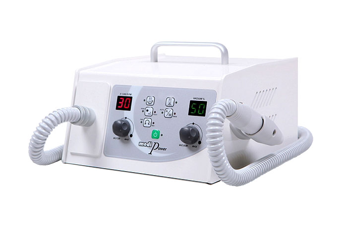 Аппарат для педикюра MediPower оснащён встроенным пылесосом.