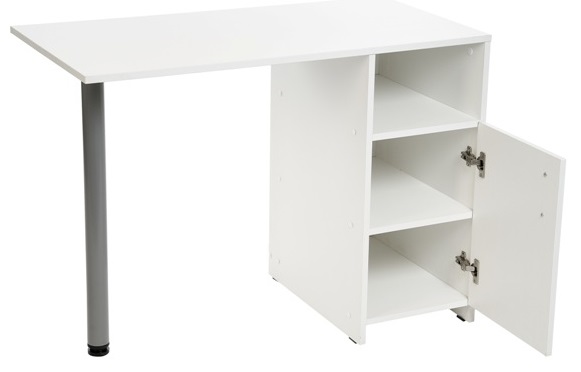 Тумба достаточно вместительна, имеет открытую полку, которая отлично подойдет для размещения маникюрно-педикюрного аппарата, а также закрытый отсек с двумя полками для хранения инструментов.