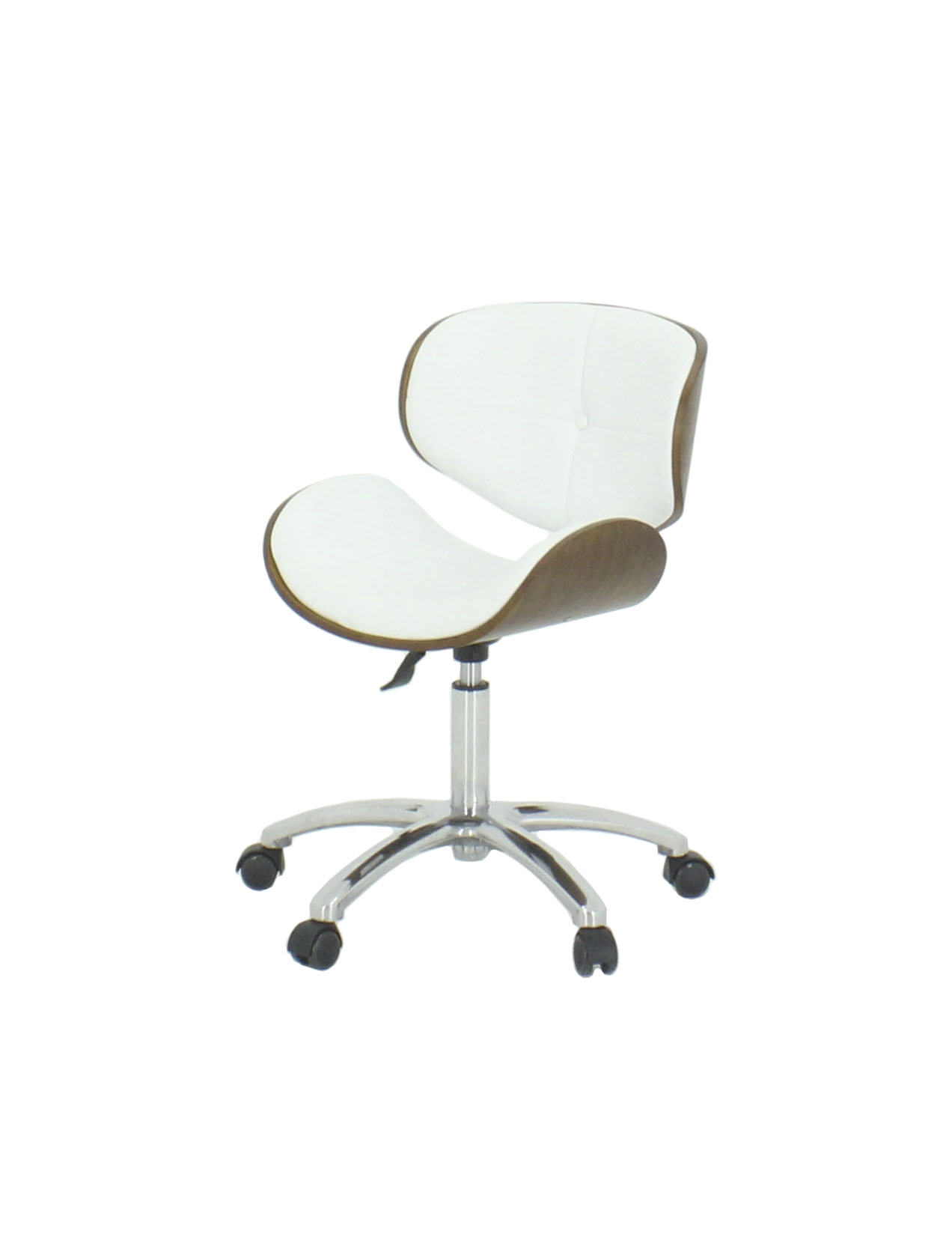 Стул установлен на устойчивое хромированное пятилучье с колесами, которое не позволит конструкции раскачиваться, делая ее надежной.