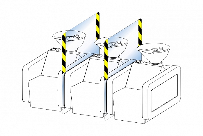 Перегородки окантованы сигнальной лентой, что исключает возможность случайного контакта с ними.