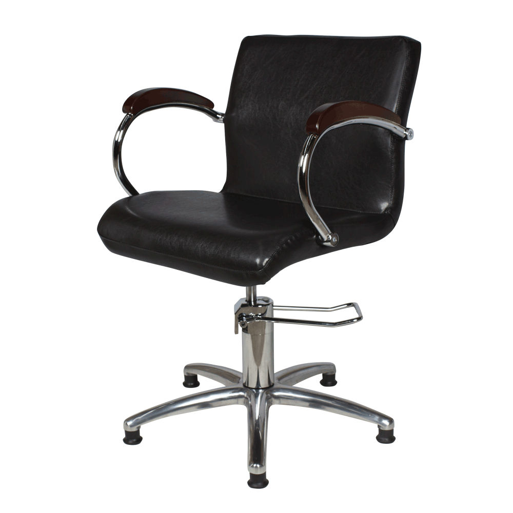Стильные хромированные подлокотники с накладками из натурального дерева, металлический каркас, устойчивое основание и гидравлический подъемник делают данный предмет мебели надежным и очень комфортным.