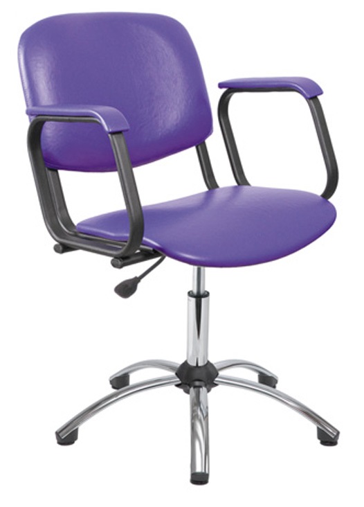 Комплектация: кресло с металлическими подлокотниками покрытыми порошковой краской и мягкими накладками в цвет изделия, основание хромированное пятилучье, пневматический подъемник.