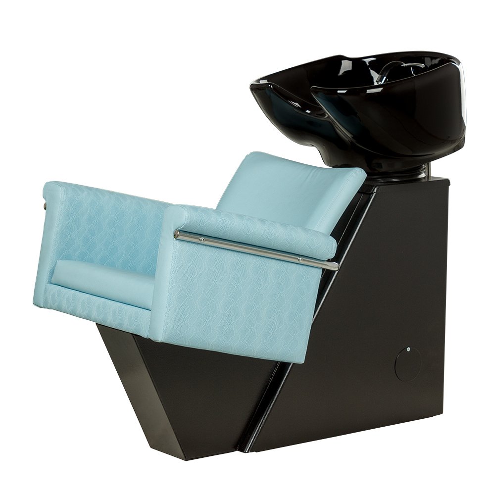 Новая модель стационарной парикмахерской мойки Лесли оснащена креслом Лесли и профессиональной глубокой раковиной черного или белого цвета..