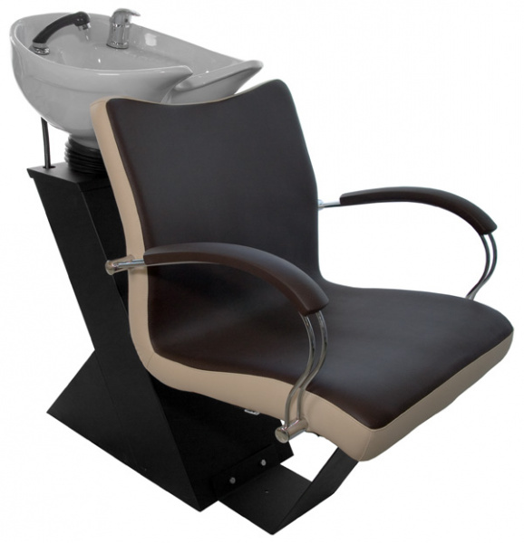 Мойка парикмахерская Дасти в комплекте с креслом Касатка имеет металлический каркас, керамическую раковину, регулирующуюся по углу наклона, комплект смесителя.