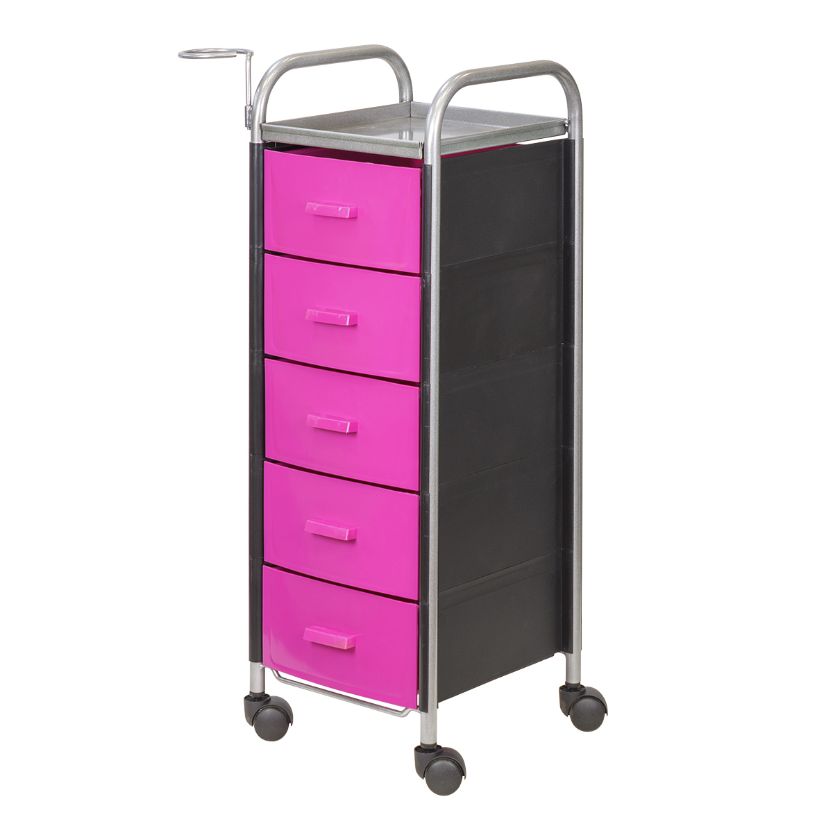 Комплектация: каркас с боковыми панелями, пять выдвижных ящиков, металлический фенодержатель, колеса.