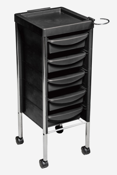 Профессиональная парикмахерская тележка выполнена из первичного ударопрочного пластика на металлическом хромированном каркасе.