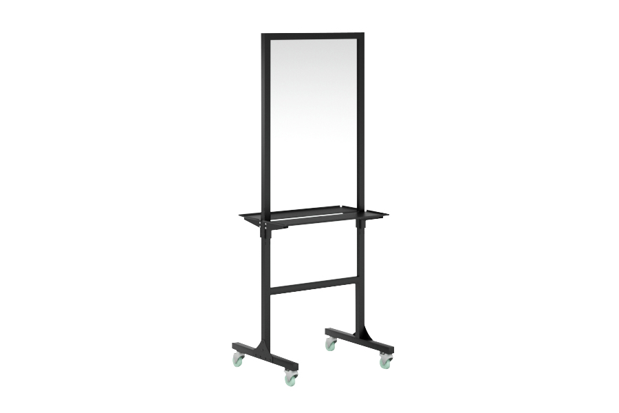 Мобильное парикмахерское зеркало Modus изготовлено из прочного металлического профиля и оснащено надежными прорезиненными колесами, обеспечивающими ему высокую мобильность.