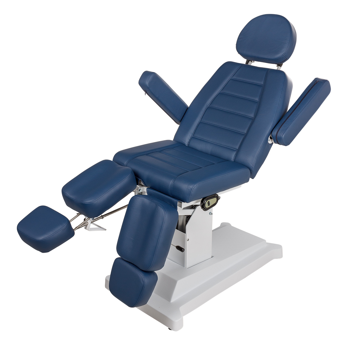 Регулирование высоты осуществляется с помощью электрического подъемника, что позволяет быстро и легко настроить необходимое положение кресла под каждого клиента.