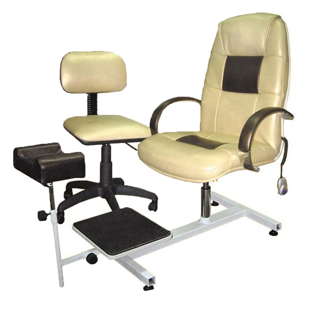 Комплектация: кресло педикюрное с функцией массажа, пульт, металлический каркас-основание, подставка под ногу, подставка для ванночки, стул для мастера.