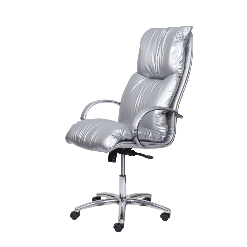 Надежность и прочность кресла обеспечивает металлический каркас и устойчивое хромированное пятилучье на подпятниках.