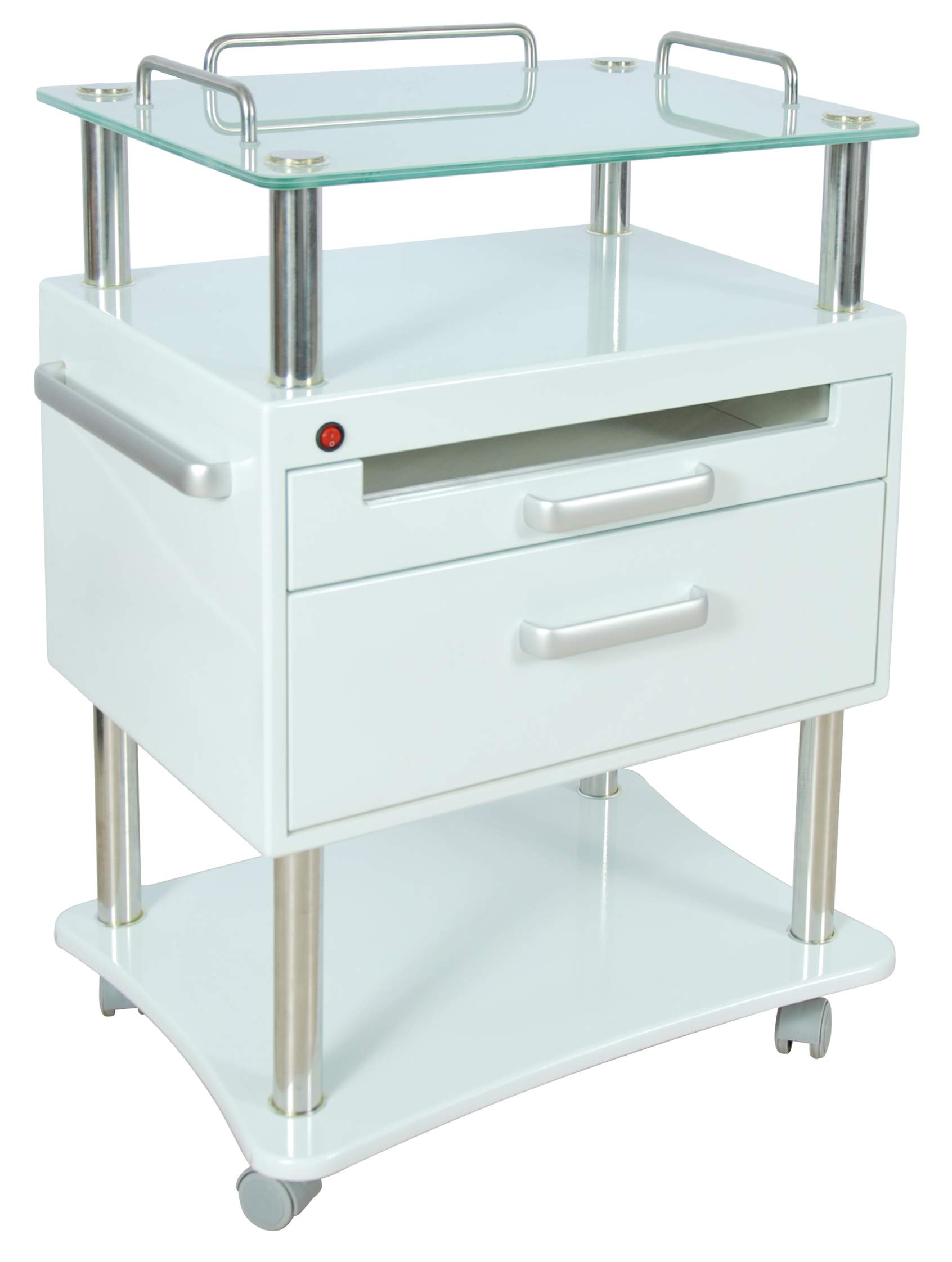 Комплектация: тумба с ящиками, УФ блок, стеклянная полка, вращающиеся колеса.