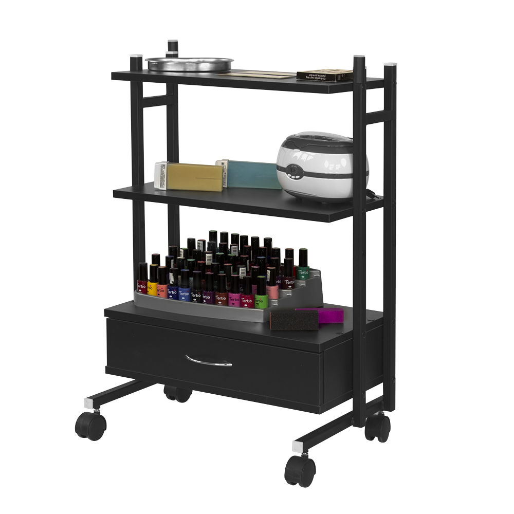 Для размещения инструментов, приборов, косметологических препаратов и прочих принадлежностей предусмотрено три удобных полки и закрытый выдвижной ящик.