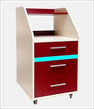 Педикюрно-косметологическая тумба Aтикa с УФ блоком разделена на 3 выдвижных ящика и две полки.