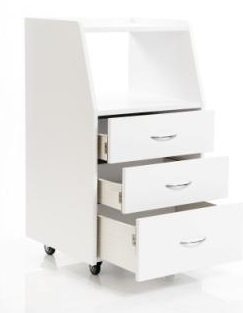 Модель оснащена тремя выдвижными ящиками и открытой полкой, на которой можно удобно разместить маникюрно-педикюрный аппарат.