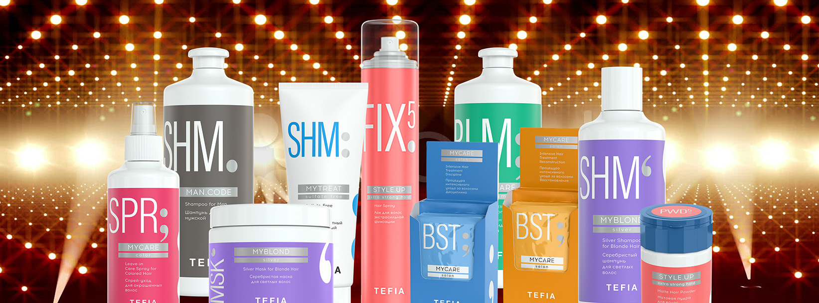 Tefia MY — полноценная коллекция профессиональных продуктов для работы парикмахера, включающая также средства для домашнего ухода за волосами и стайлинга для клиентов салонов красоты.