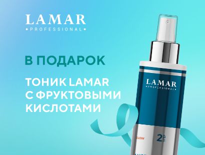 При покупке продукции бренда от 3 000 рублей - в подарок Lamar Professional, Обновляющий увлажняющий тоник c фруктовыми кислотами AMBER SHINE, 200 мл.