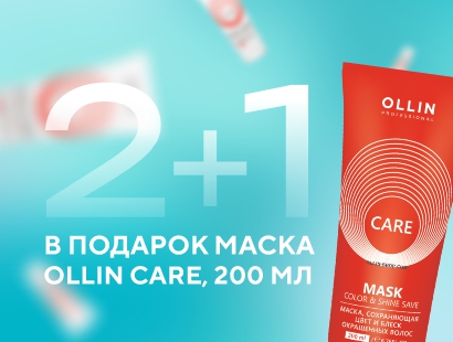 2+1 - При покупке 2-х средств бренда Ollin линейки Care - шампунь 1000 мл + кондиционер 1000 мл вы получаете в подарок : 395119 маска 200 мл, сохраняющая цвет и блеск окрашенных волос Ollin линейки Care (стоимость подарка 26%)