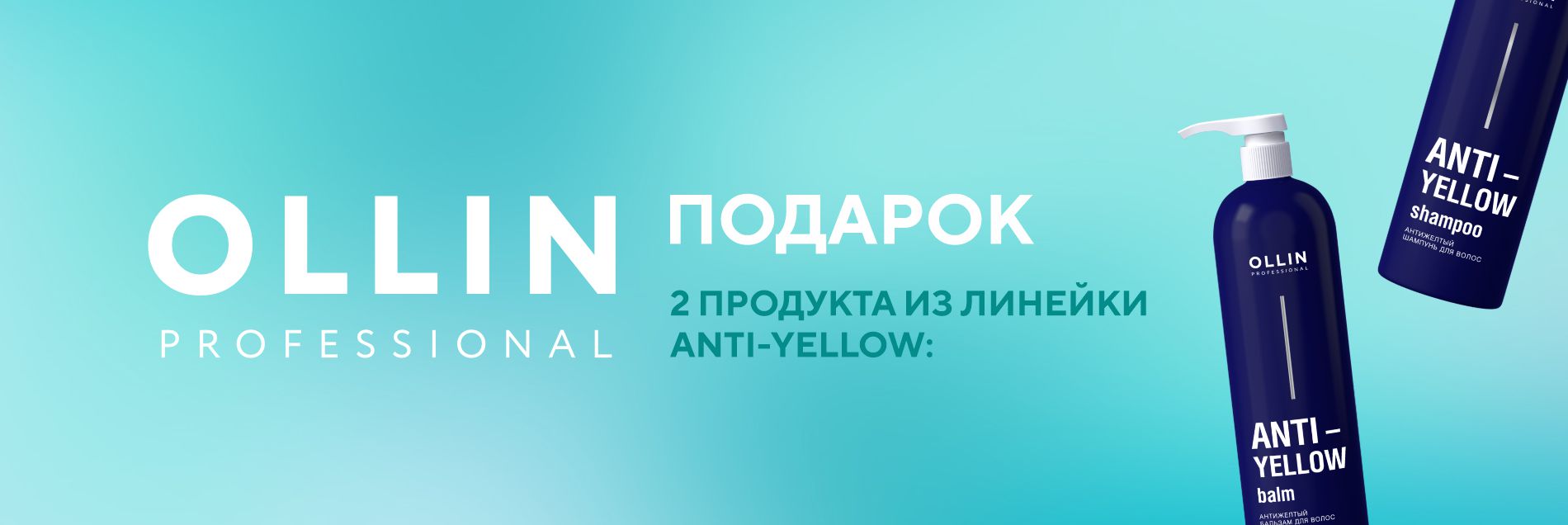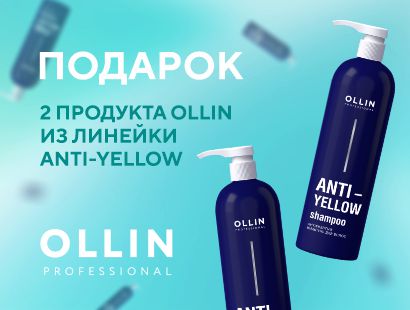 При покупке на сумму продукции бренда Ollin от 5000 рублей - в подарок 2 продукта из линейки ANTI-YELLOW: