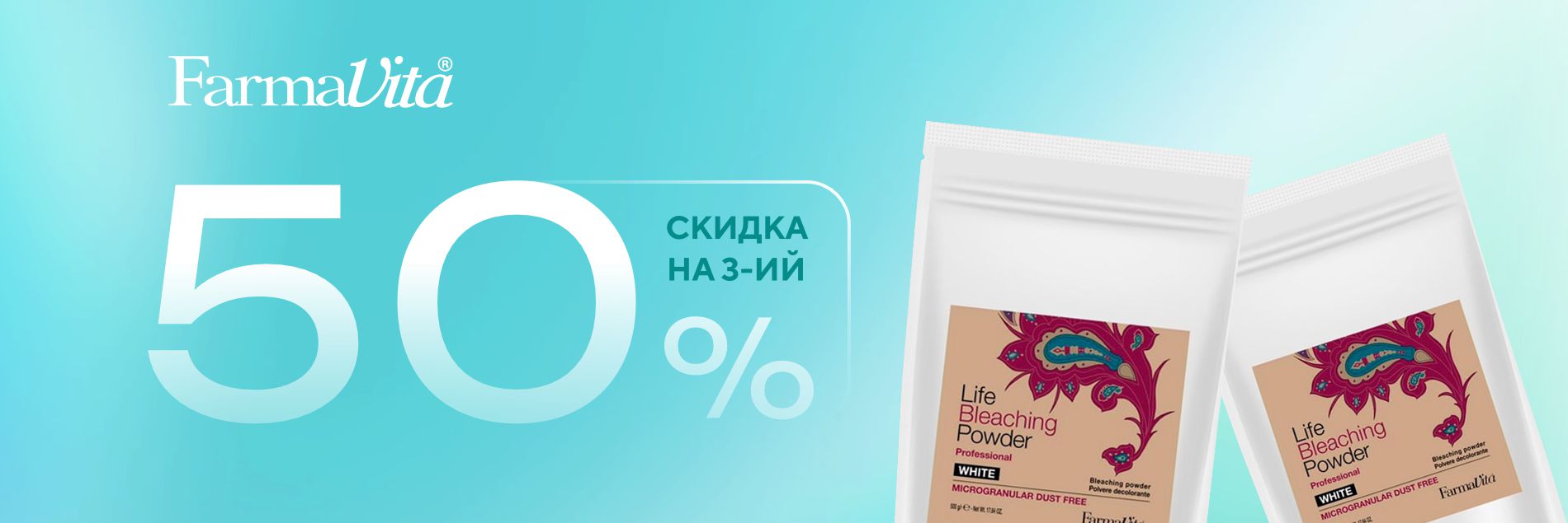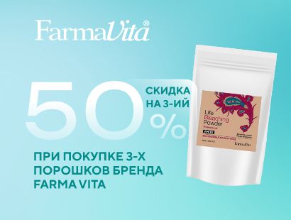 При покупке 3-х порошков бренда FARMA VITA (кроме линейки FAVORIT) -50% скидка на 3-ий (по наименьшей цене).