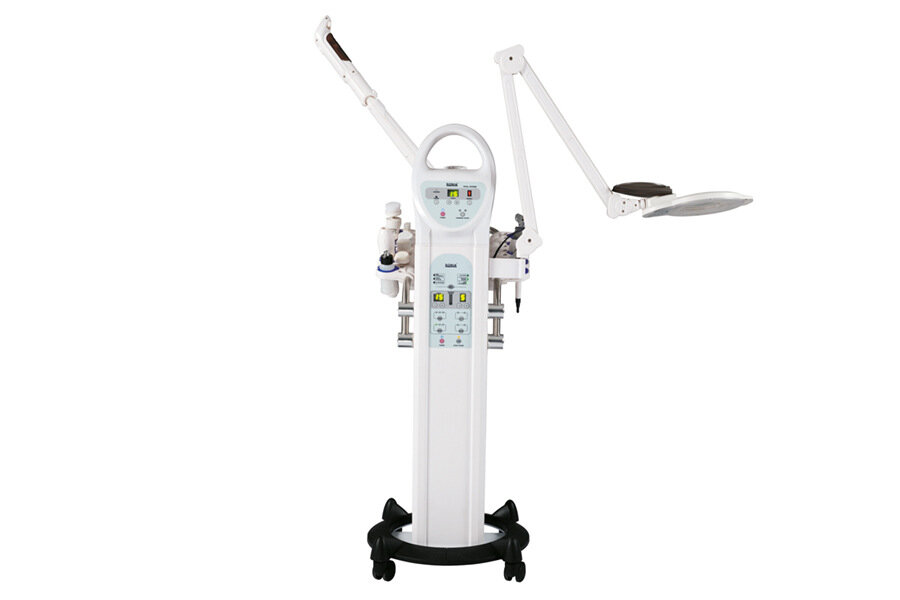 Стойка может использоваться для проведения восьми типов косметологических процедур: распаривание, дарсонвализация, ультразвуковой пилинг, ультразвуковая терапия, брашинг, гальваника, вакуум, спрей.