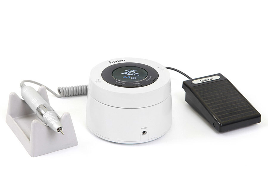 Компактный и легкий аппарат для проведения процедур маникюра и педикюра Brillian White оснащён самым лёгким наконечником и особым микромотором, который обеспечивает низкий уровень шумов и вибраций.