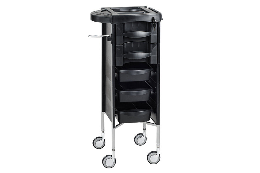 Парикмахерская тележка QA0006 с запирающимися верхними ящиками и металлическим держателем фена.